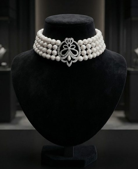 The Emeline Choker highlights the natural glow of freshwater pearls, offering a look that feels elegant, confident, and beautifully understated.