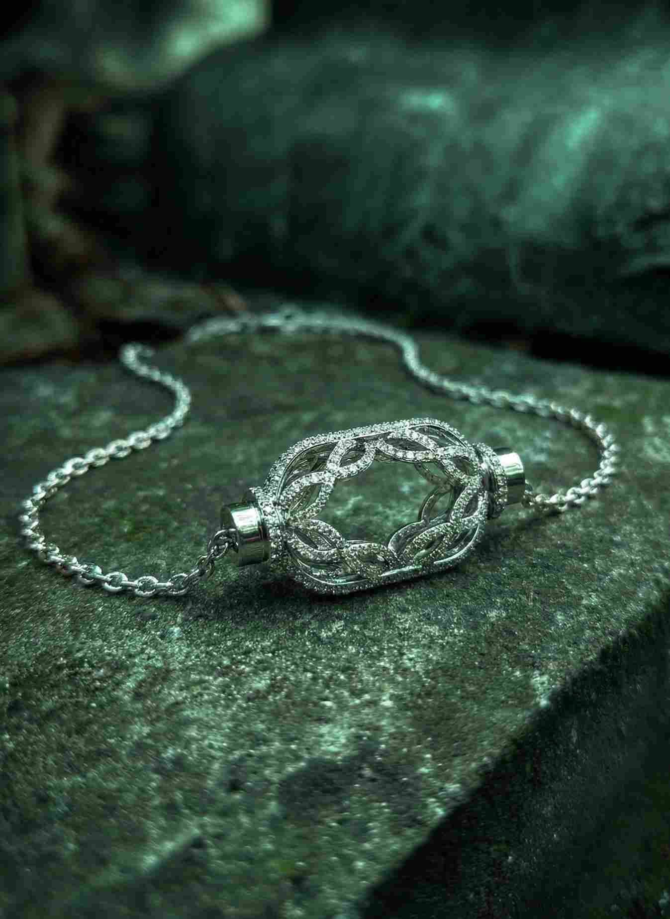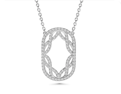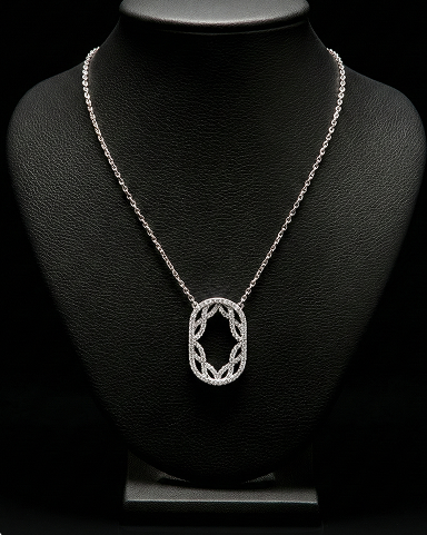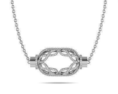 Suspended with graceful precision, the Lattice Necklace showcases an elegant geometric motif that reflects light through delicate, sculpted symmetry.
