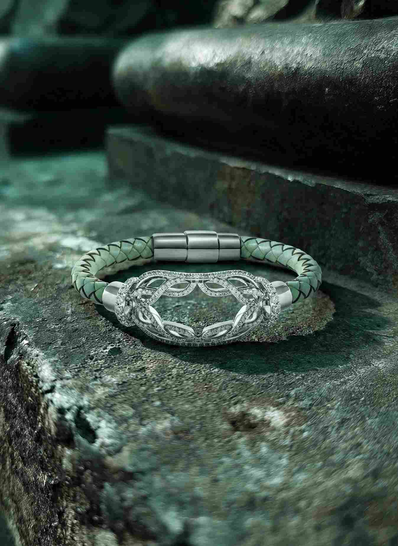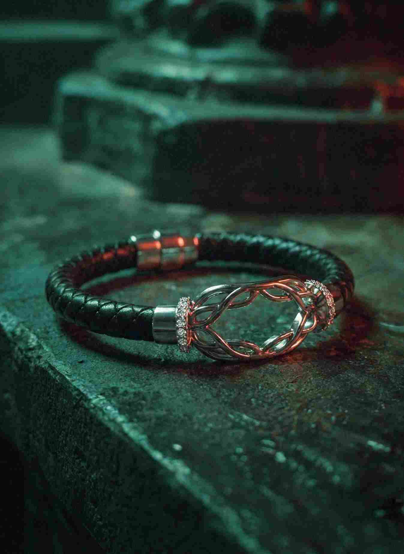 Bold and refined, the men’s Monogram Bracelet pairs structured leather with a sleek engraved plate, creating a contemporary statement of individuality and strength.