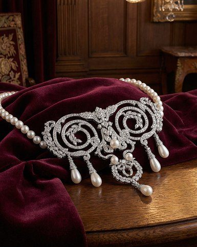 The Edith Necklace is a masterpiece of elegance, crafted from 38.3g of polished white gold and adorned with 8.36 carats of dazzling diamonds. Luminous freshwater pearls complete its design, blending brilliance and softness for a truly timeless statement of luxury.