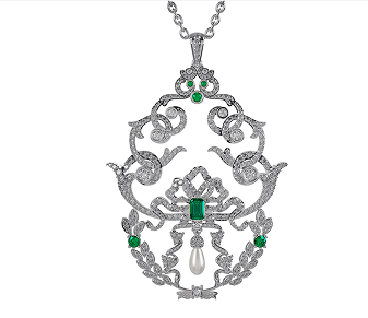 The Adelite Necklace unites the richness of emerald, the purity of a freshwater pearl, and the brilliance of 0.97 carats of diamonds, all set in 4.74g of polished white gold. A refined balance of textures and tones, it’s a jewel designed for those who appreciate subtle sophistication with a touch of color.